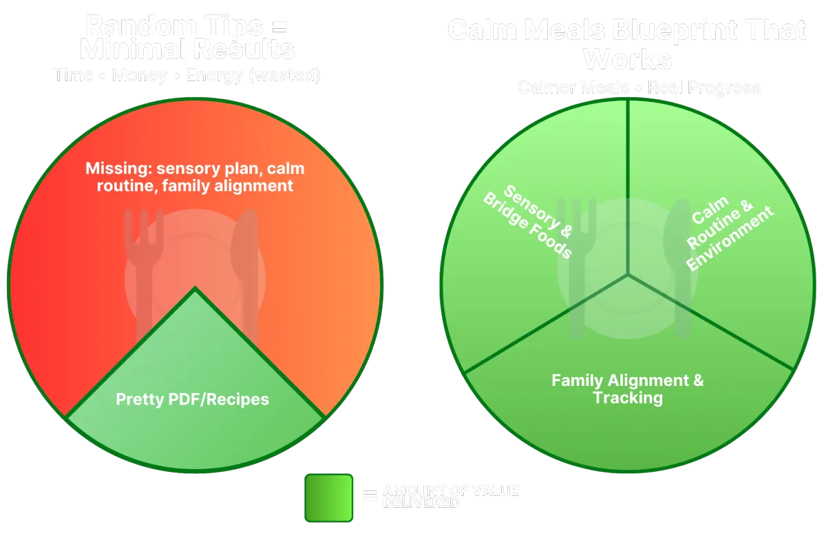 Calm Meals isn’t just another parenting tip, it’s a complete system designed to:
