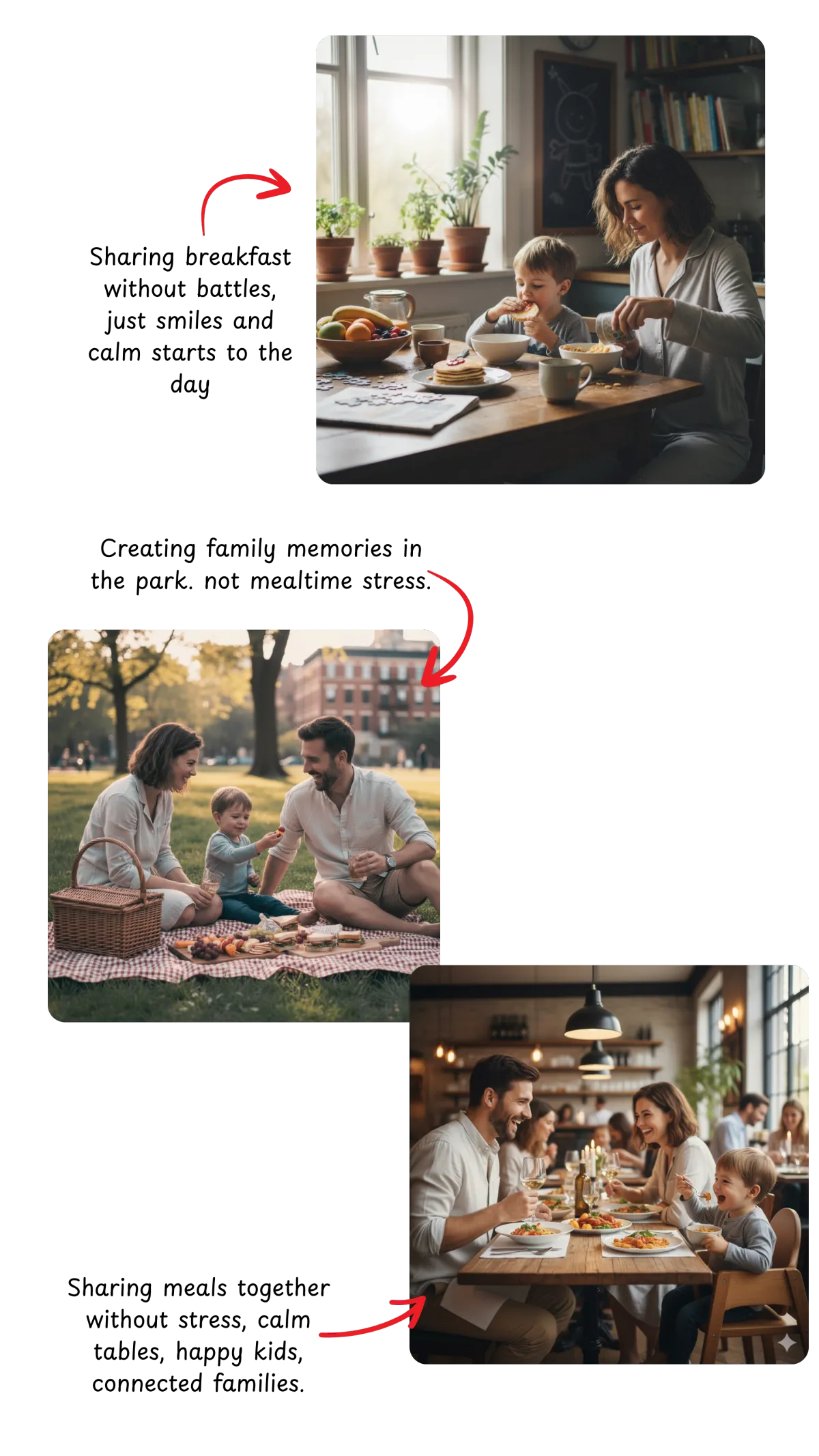 Calm Meals was built to fill that gap—so parents could finally replace chaos with connection, and mealtimes could feel like family again instead of a battlefield.